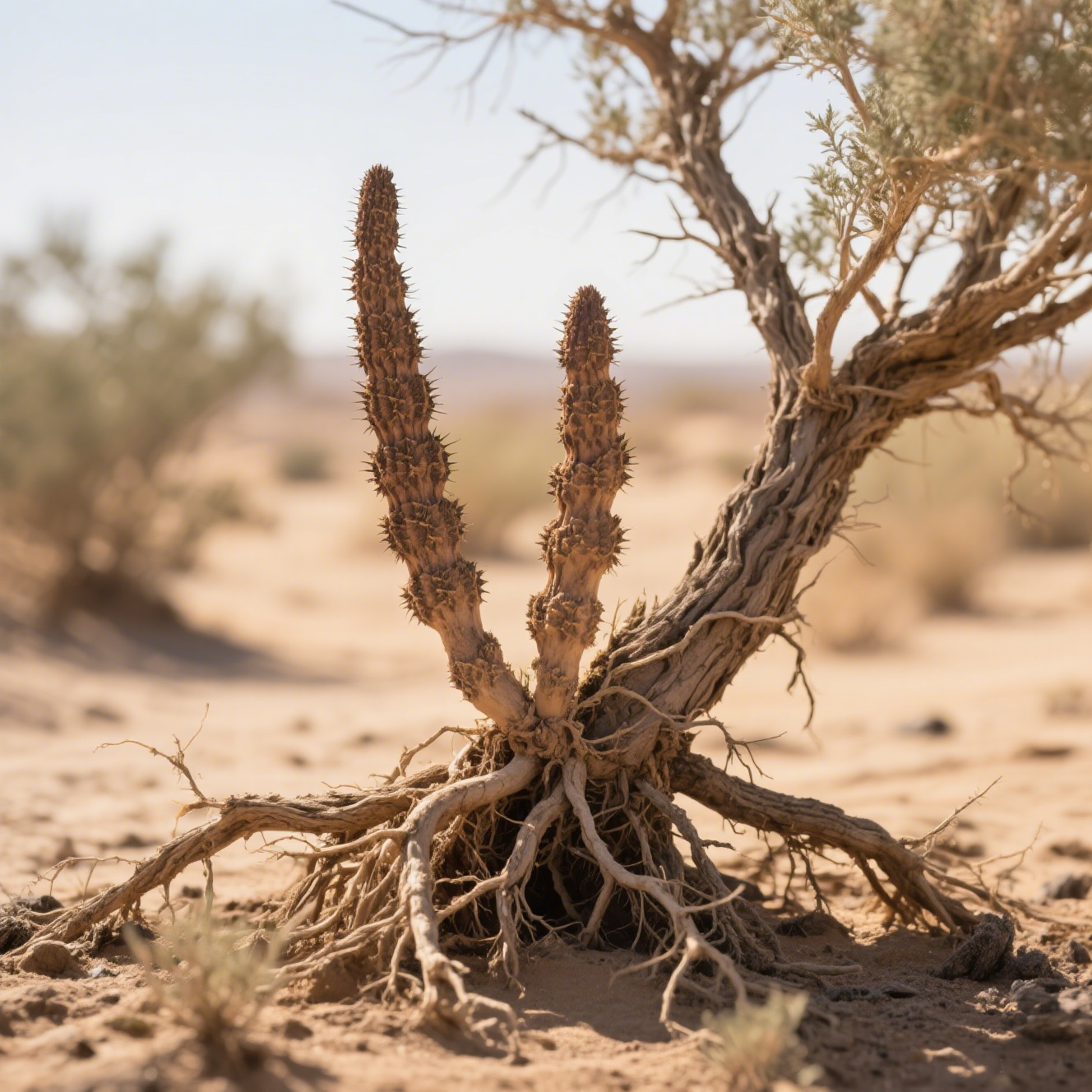 肉蓯蓉(學名:Cistanche deserticola Ma)隸屬於列當科肉蓯蓉屬,為多年生寄生草本植物。其株高可達 40-160 厘米,莖幹肉質肥厚,呈黃褐色或淡紫褐色,表面布滿鱗片狀葉片,猶如披著鎧甲的沙漠衛士。每年春季,肉蓯蓉會從梭梭樹根部破土而出,頂端抽出穗狀花序,開出紫紅色的花朵,成為荒漠中獨特的風景。